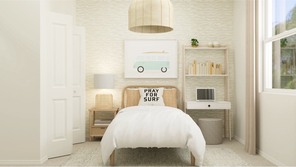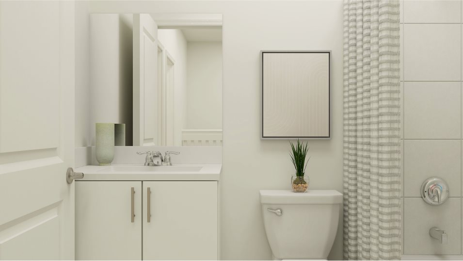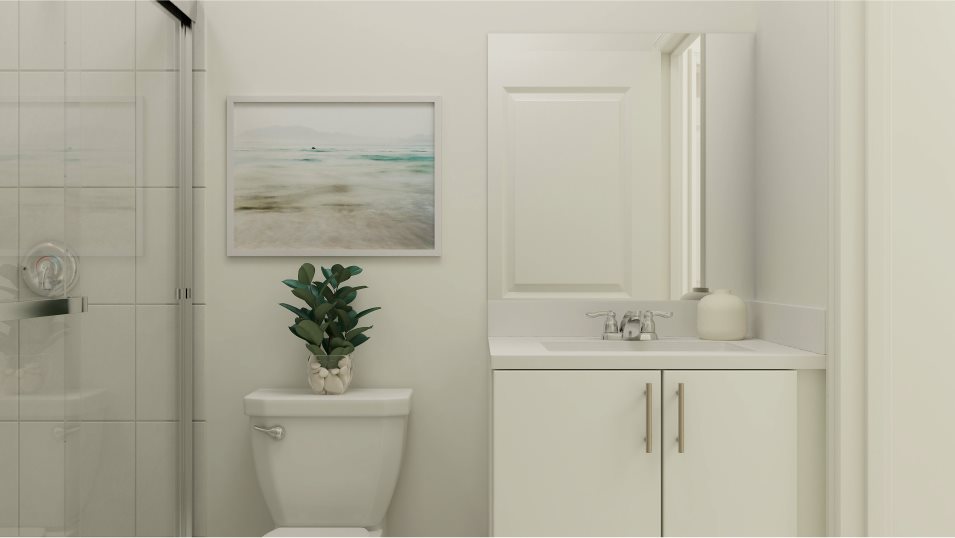 The Tulip’s first floor is crafted for both comfort and connectivity. An open-concept layout seamlessly links the kitchen and Great Room, creating a welcoming environment for family gatherings or entertaining friends. Natural light fills the space, enhancing its airy, inviting atmosphere. Step outside from the Great Room to a private patio, perfect for morning coffee, outdoor dining, or simply enjoying Florida’s beautiful weather. A secondary bedroom and full bathroom are conveniently located near the foyer, providing an ideal space for a home office, guest room, or flexible living area to suit your lifestyle.