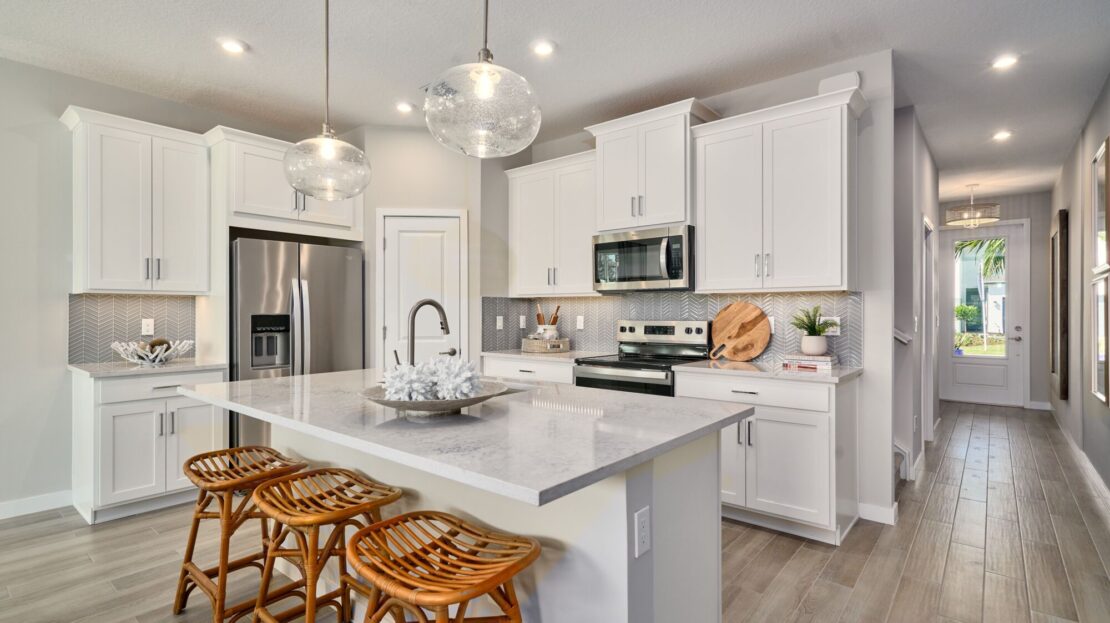 From the moment you arrive, the Hawthorn feels inviting and unique. Positioned exclusively on the interior block of homes, it features a charming front porch that sets the tone for warm welcomes and relaxed outdoor moments. In the rear, a private patio expands your living space, creating an ideal spot for morning coffee, weekend grilling, or quiet unwinding under the Florida sky.