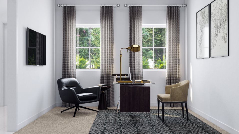 The Lumio seamlessly blends style, functionality, and comfort. Upon entering, you are greeted by a welcoming foyer that leads directly into a versatile den—perfect for a home office, study, or reading nook. The heart of the home features an open-concept layout where the Great Room, dining area, and kitchen flow effortlessly together, creating a bright and inviting space for everyday living and entertaining. Large windows fill the home with natural light, enhancing the airy, contemporary atmosphere.