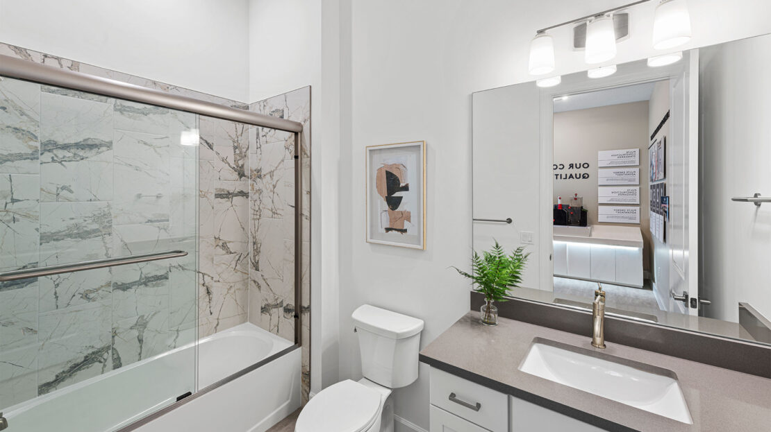 The Mystique floorplan is designed for personalization. Homeowners can add an optional bedroom or den, perfect for a home office, guest suite, or creative hobby space. Each bedroom is spacious, with well-appointed bathrooms that feature modern finishes and thoughtful touches to enhance daily comfort.