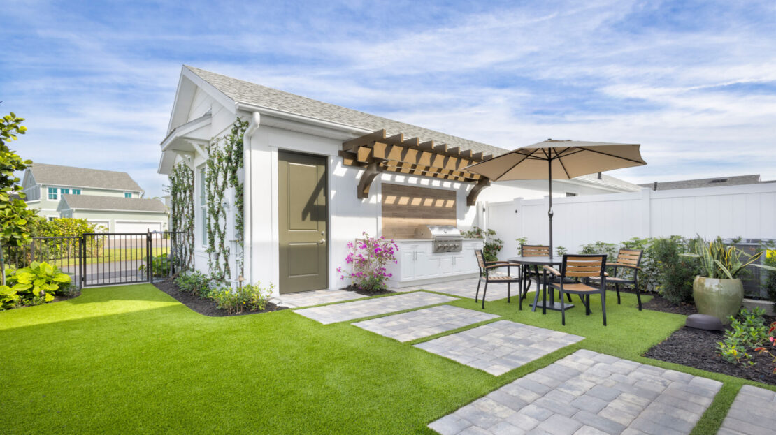 At the heart of the Aster is a modern kitchen that caters to both culinary enthusiasts and casual cooks. Sleek countertops, ample cabinetry, and thoughtfully positioned appliances make meal preparation effortless and enjoyable. The adjacent dining and living areas create a seamless space for gatherings, whether hosting friends or enjoying quiet evenings at home. Large windows invite Florida’s sunshine in, adding warmth and vibrancy to every corner.
